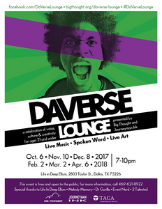DaVerse Lounge is an open-mic event hosted in partnership, by Journeyman Ink and Big Thought, at Life in Deep Ellum. This event features DFW youth and young adult poets age 21 and under. DaVerse Lounge is open to youth of all ages!