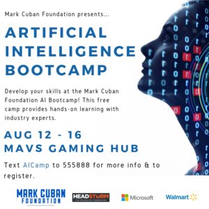 Develop your skills for the future at the Mark Cuban Foundation Artificial Intelligence (AI) Bootcamp! In partnership with Microsoft, Walmart and Big Thought, this free day camp provides hands-on learning with industry experts for twenty Dallas Independent School District high school students.
